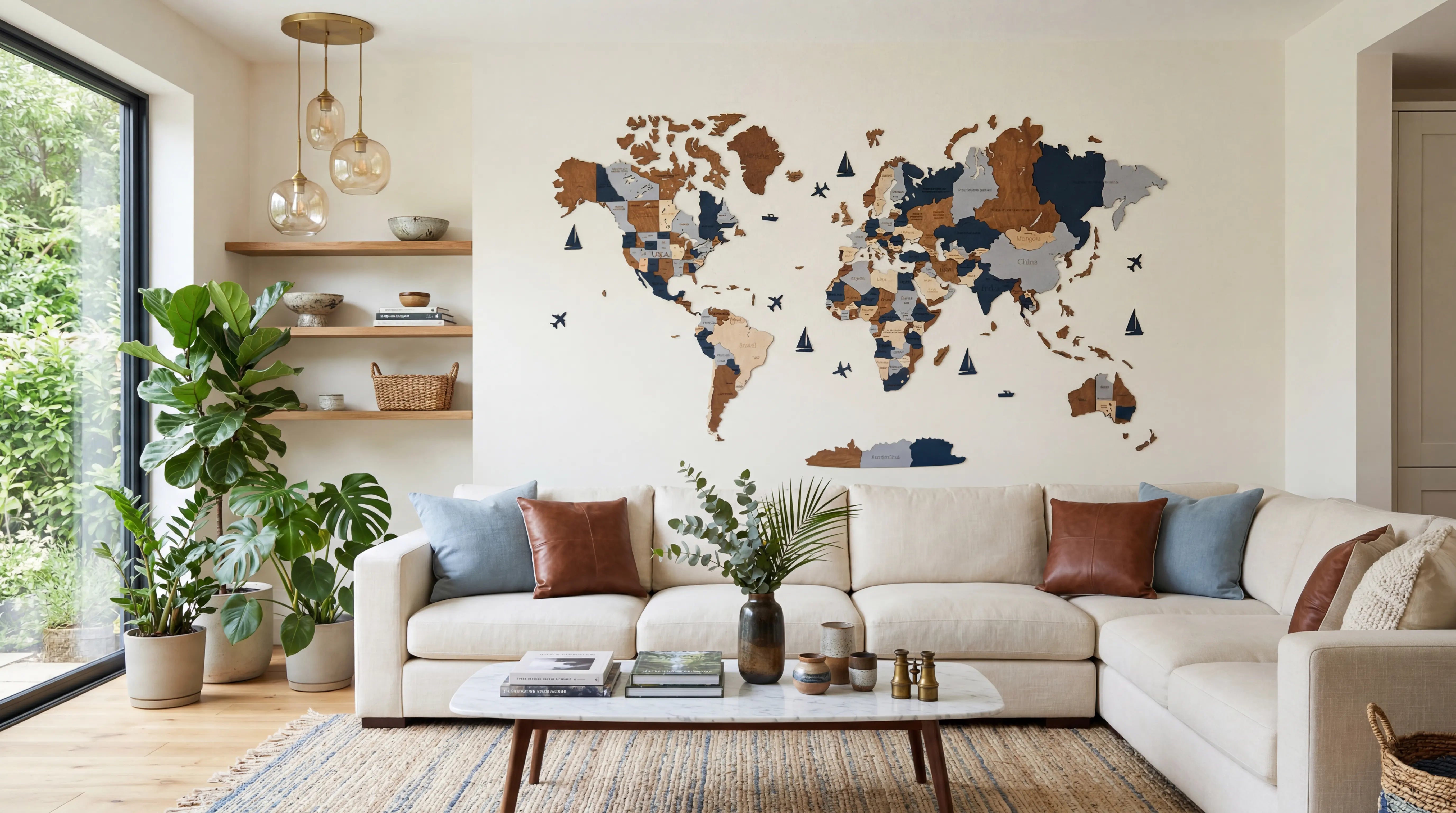 WOW WOOD offers a lifetime warranty on every 3D wooden world map. If a small island, decorative element, or wooden pin is damaged or lost, WOW WOOD sends a free replacement from the EU warehouse in Poland. The warranty covers up to 15% of the map's components per calendar year. Register your map after purchase to activate lifetime coverage for all sizes and finishes.